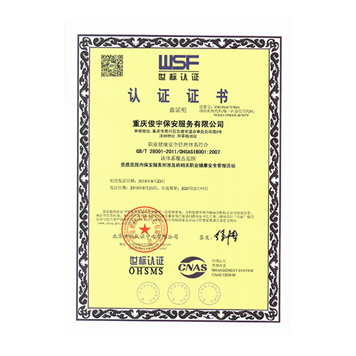 職業(yè)健康安全管理體系認(rèn)證證書