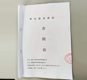 4月28日,公司再次搭上四月這一尾列簽得新訂單。這是繼4月25日與南川區(qū)中醫(yī)院簽得合作協(xié)議后短短一周內(nèi)再次簽得的第二筆合作訂單。此次合作單位為重慶二郎治金新材料公司(以下簡稱重慶二郎公司),合作協(xié)議約定由重慶二郎公司委托我司向其輸送保安人才25名,負(fù)責(zé)其二期項目工程建設(shè)工作中的全面安全保衛(wèi)工作。重慶二郎公司地屬涪陵清溪鎮(zhèn)內(nèi),與該公司的業(yè)務(wù)合作,不僅說明了我公司業(yè)務(wù)已經(jīng)突破了當(dāng)?shù)貐^(qū)域化,逐漸向更廣闊的區(qū)間市場發(fā)展,同時更說明公司服務(wù)質(zhì)量和實力在客戶和市場間已經(jīng)得到了認(rèn)可。盡管四月我們成績斐然,然百尺竿頭,我們還需繼續(xù)拼博,努力開拓,希望赤熱的五月我們再傳佳績戰(zhàn)報。